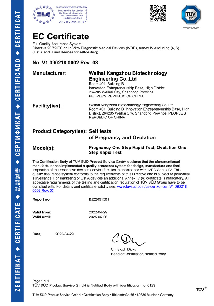 早孕和排卵產(chǎn)品的 CE 證書(shū)
