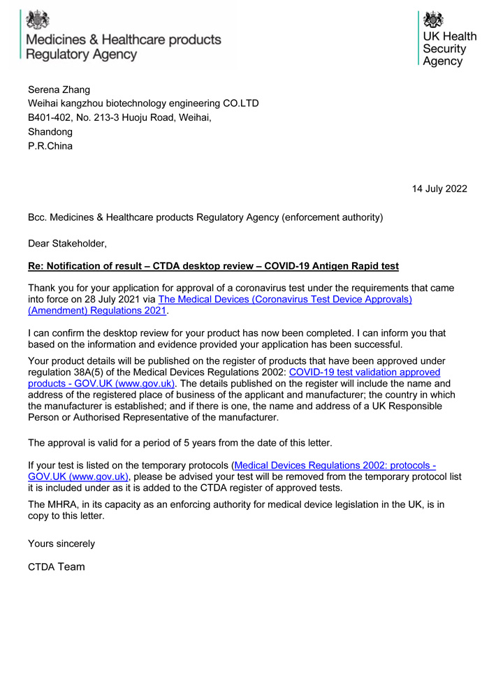 新冠抗原-英國CTDA認證