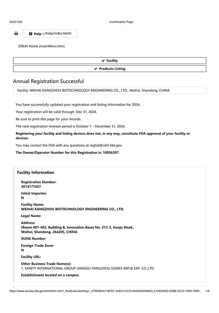 FDA 2024年注冊憑證