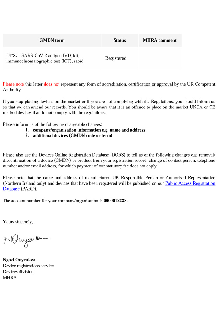 新冠抗原-英國(guó)MHRA注冊(cè)