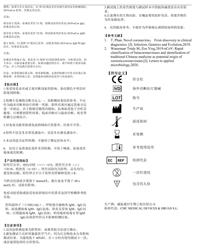 預(yù)期用途:用于體外定性檢測人血清、血漿、全血中新冠病毒IgG/IgM抗體。